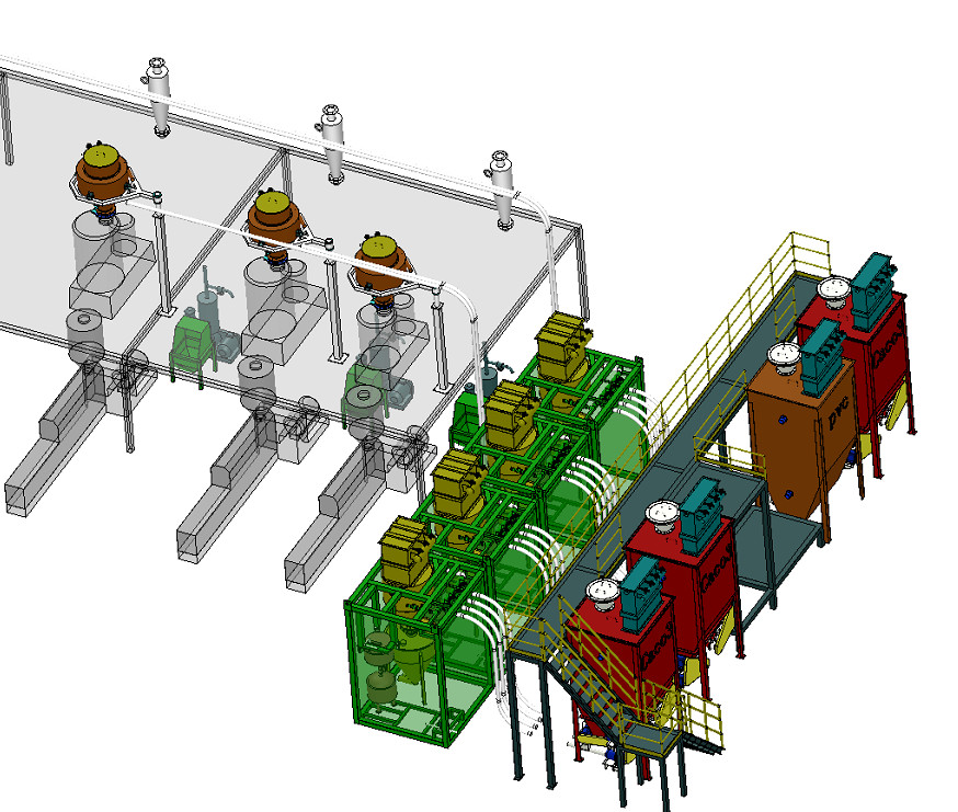 多層廠房采用一次輸送方式,即物料從原料倉輸送至計量磅秤后靠自重垂直落入攪拌機內(nèi);單層廠房采用二次輸送方式,即物料從原料倉輸送至計量磅秤后,再從計量磅秤輸送至上料單元后靠自重垂直落入攪拌機內(nèi)。若客戶的生產(chǎn)工藝流程有其他特殊要求,我公司可以根據(jù)客戶實際需求做出相應調(diào)整。